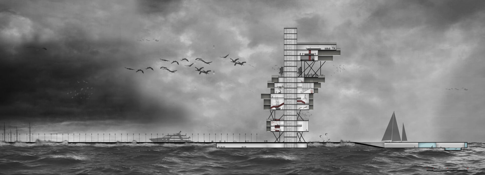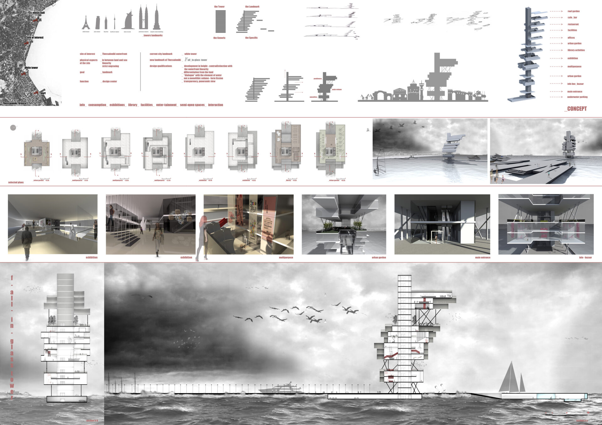Το project στοχεύει στη δημιουργία ενός νέου τοπόσημου στην πόλη της Θεσσαλονίκης. Σε αντιπαραβολή του υπάρχοντος τοποσήμου – Λευκός Πύργος – συντίθεται ένας νέος σύγχρονος ‘πύργος’ σε άμεσο διάλογο με το υδάτινο στοιχείο.